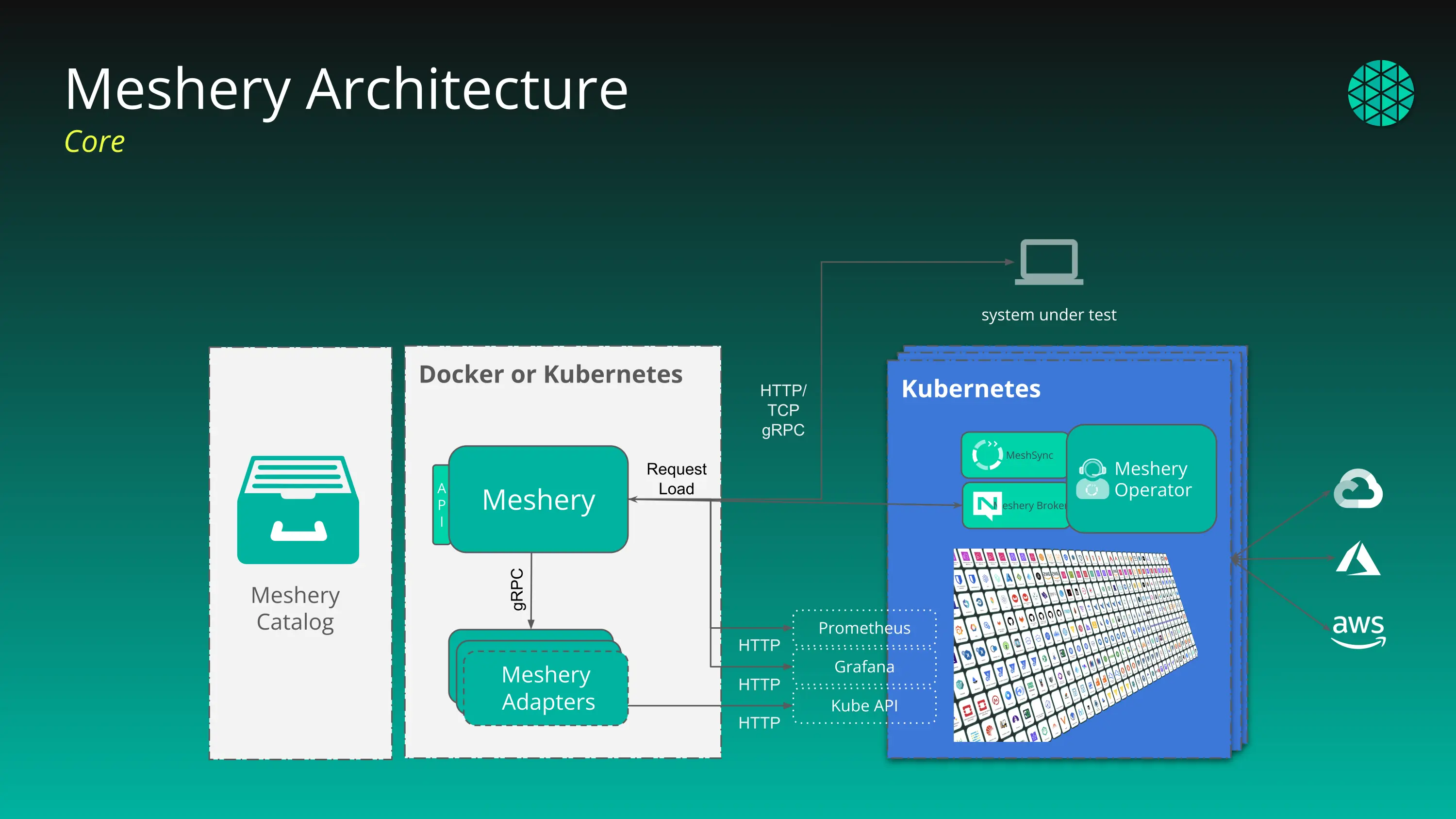 - Broker - Meshery broker component facilitates data streaming between kubernetes cluster components and outside world.