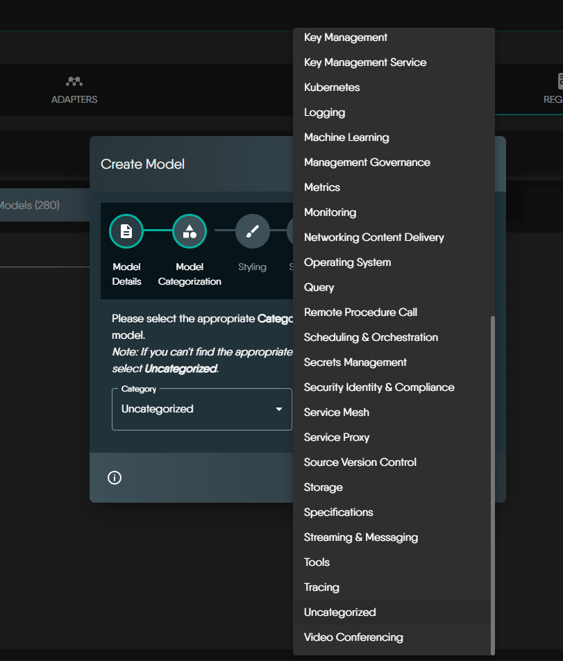This section walks you through the Create workflow β perfect for users who want full control over naming, styling, and categorizing their models while sourcing CRDs from GitHub or ArtifactHub.