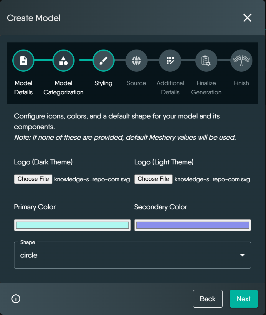 Note: If you don't provide custom styling, Meshery's default values will be used.
