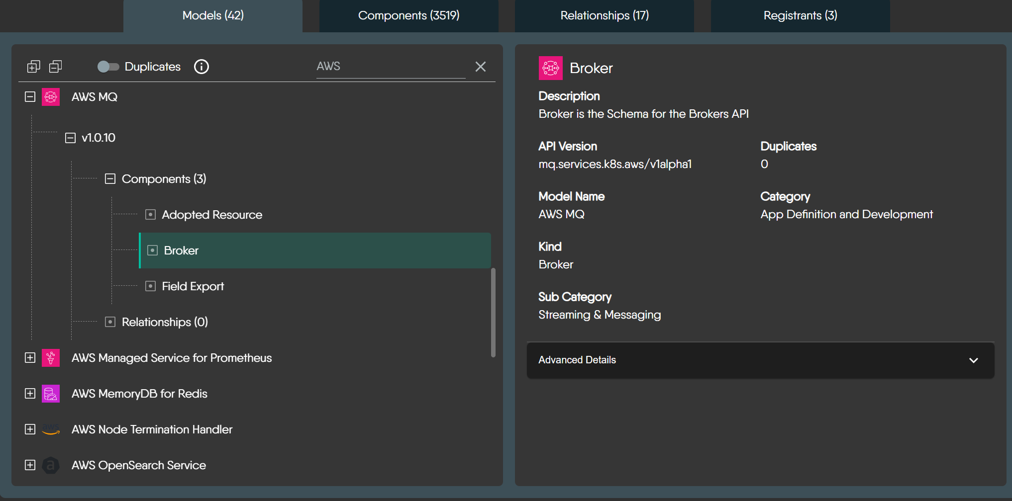 Semantic Components (Orchestratable): These represent actual infrastructure resources that Meshery can understand and manage during deployment. Examples include Kubernetes resources (like Pods and Services), databases, and other infrastructure components. Meshery will actively manage their lifecycle during deployment.