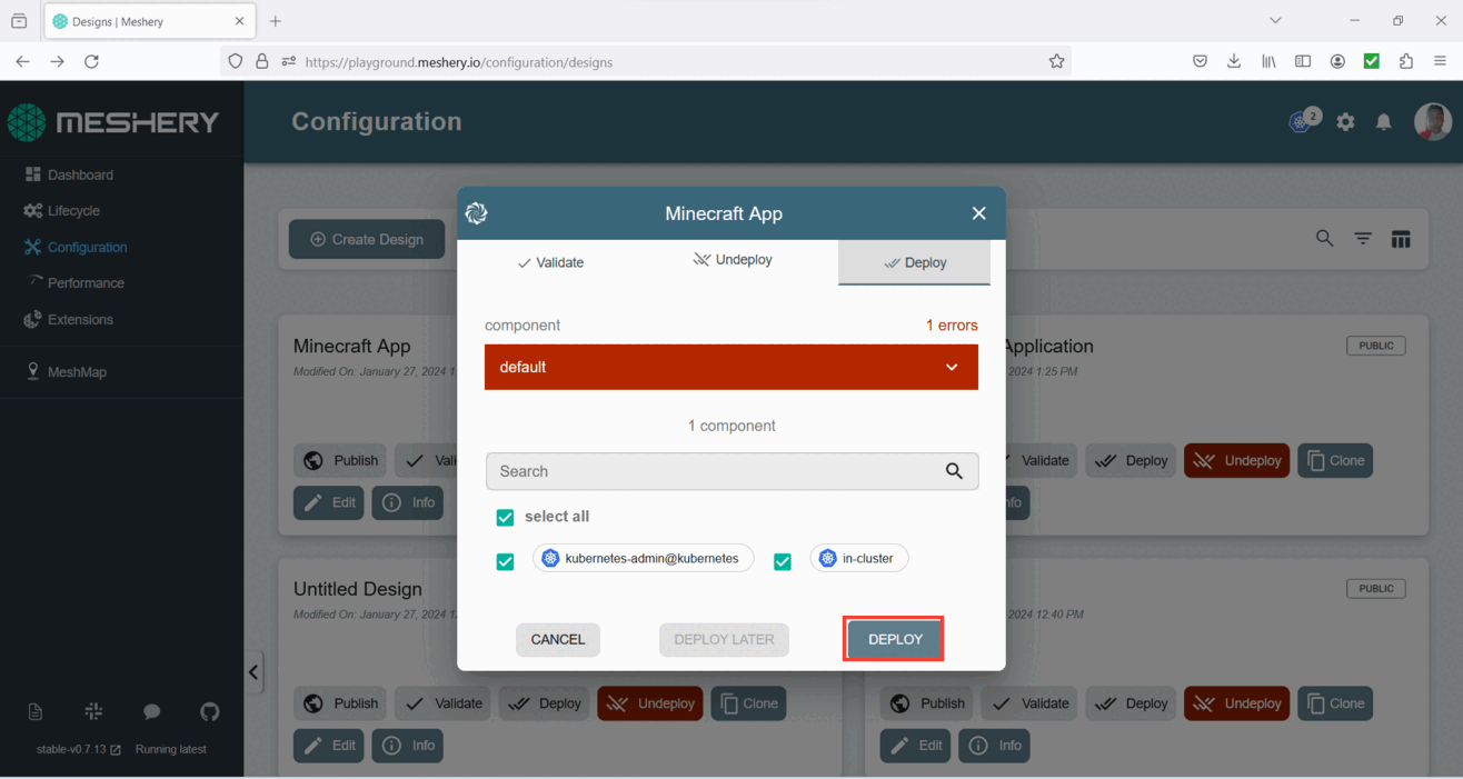 - Once logged in, navigate to the Meshery Playground dashboard.