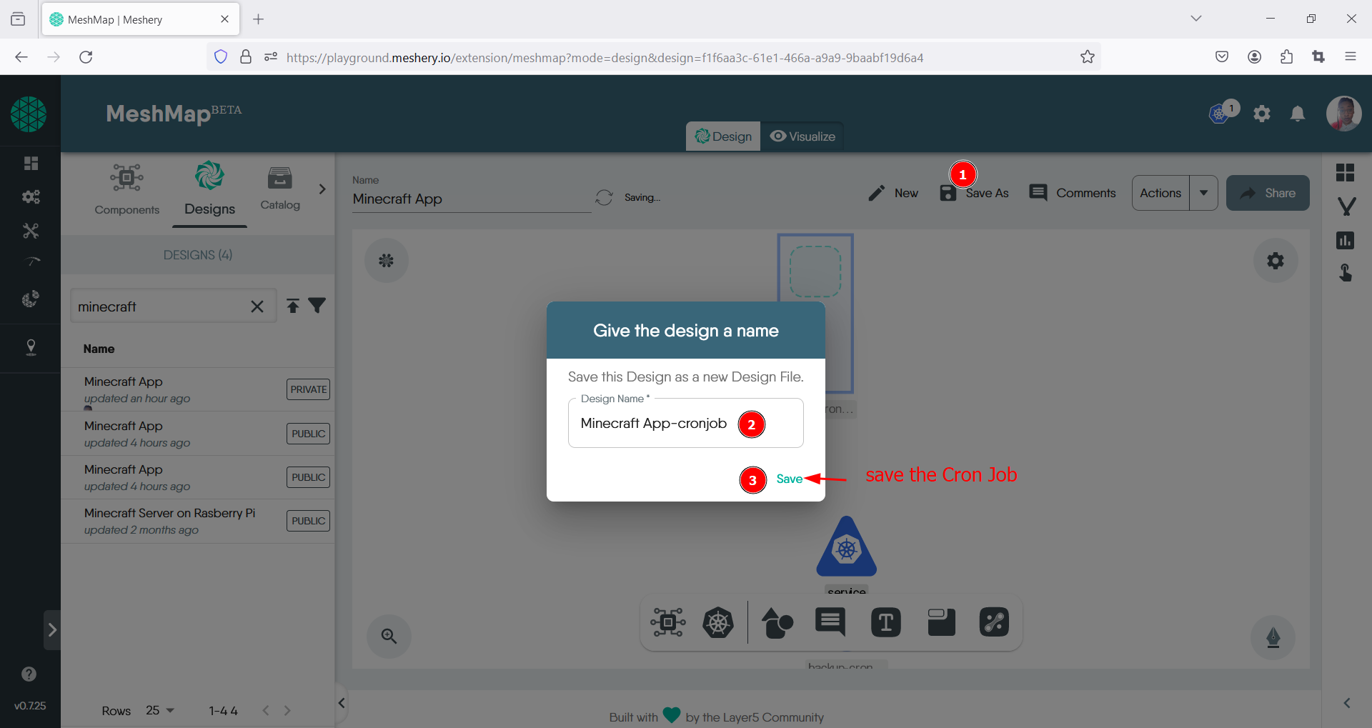 Select the CronJob Design: Choose the design that contains the CronJob you want to scale from the list of existing designs.