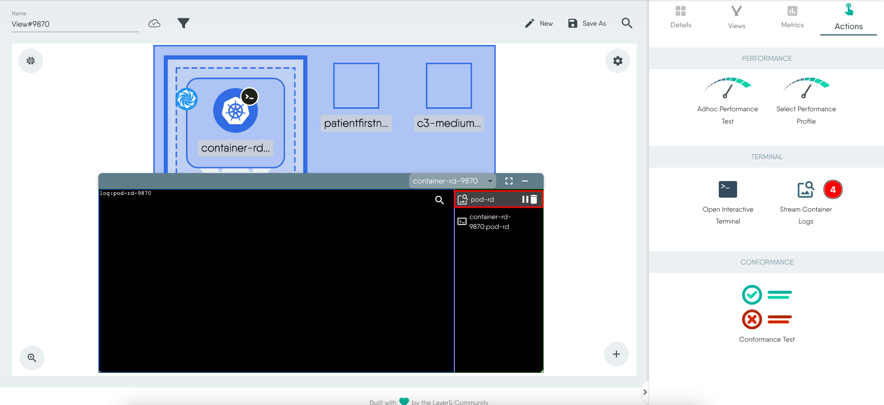 - To view streaming logs, click Stream Container Logs to the right and an additional logs view is added to the terminal window.