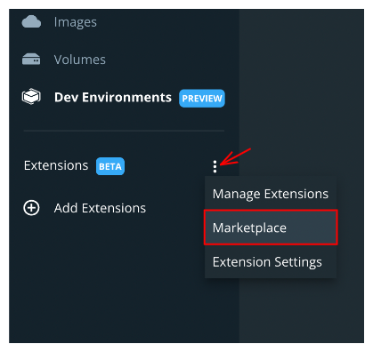 Navigate to the Extensions Marketplace of Docker Desktop.